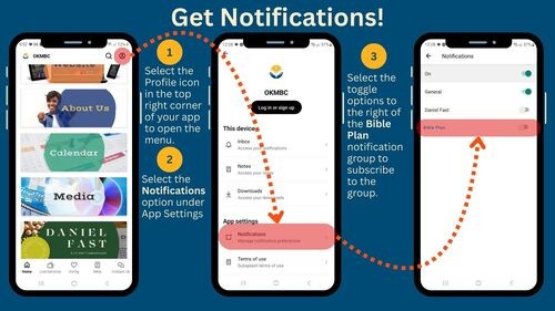- Enable Notifications – Once installed, open the app, navigate to Settings, and turn on Bible Plan Notifications to receive Scripture and encouragement throughout the year.